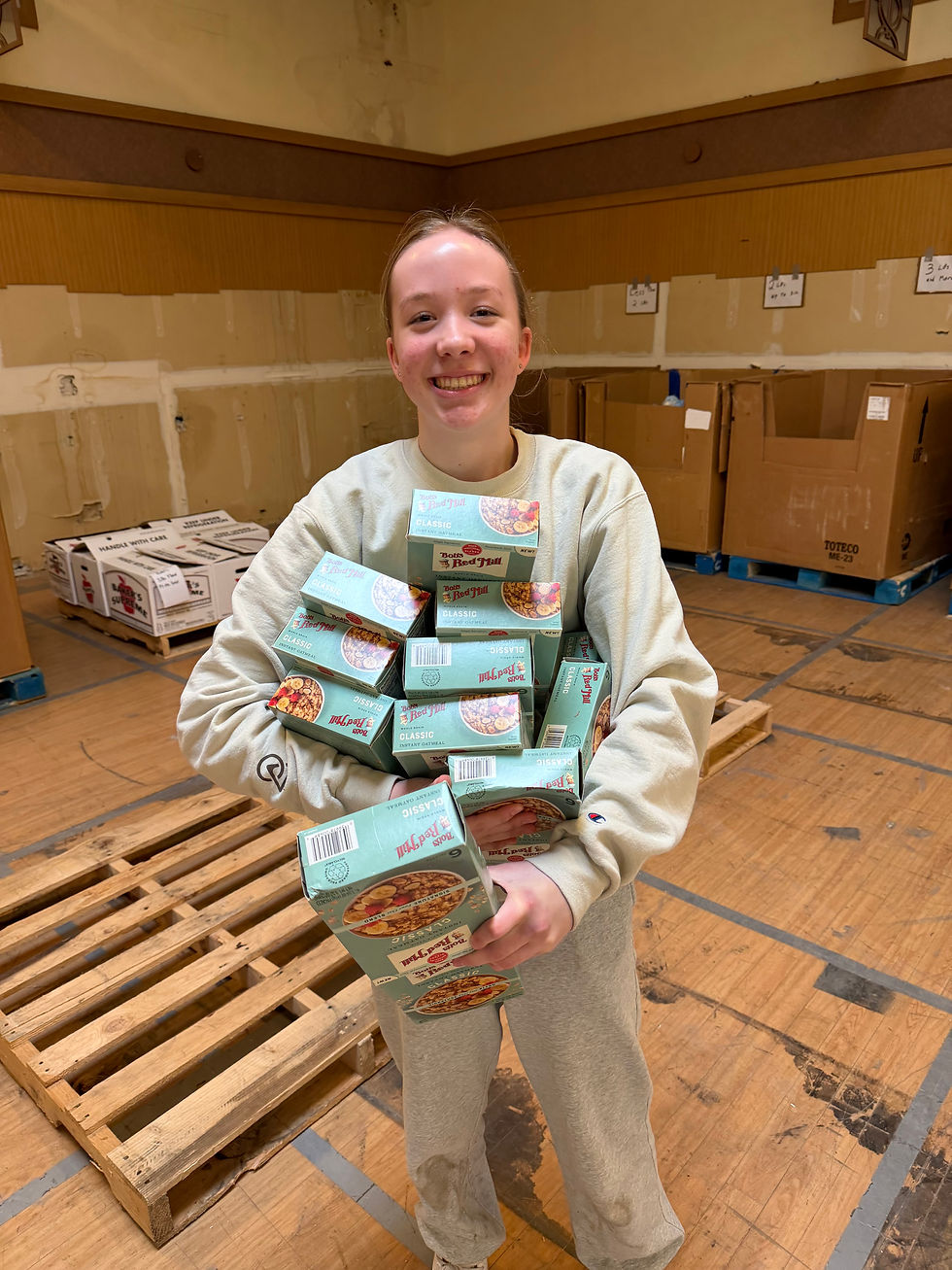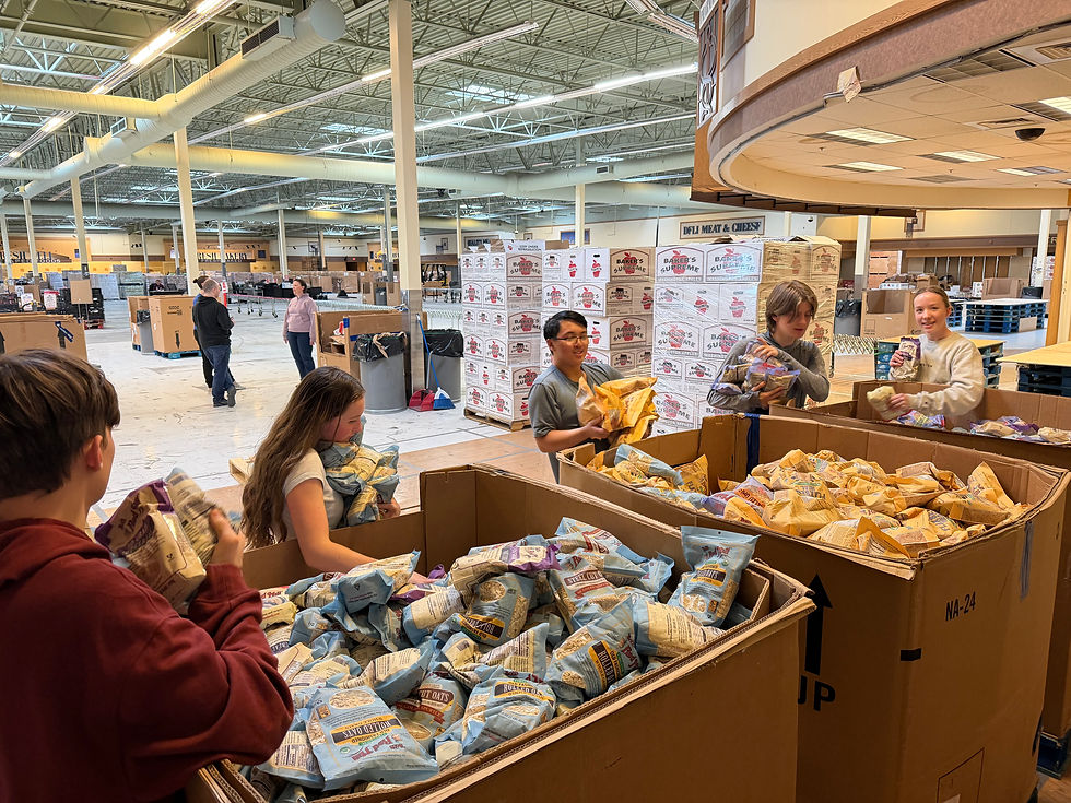 On day two, students continued their work at the PACS thrift store, sorting donations, stocking shelves, and preparing items for sale. They finished their mission experience at the Sunshine Division, organizing food donations into boxes that will support families in need as the organization transitions to a new location.